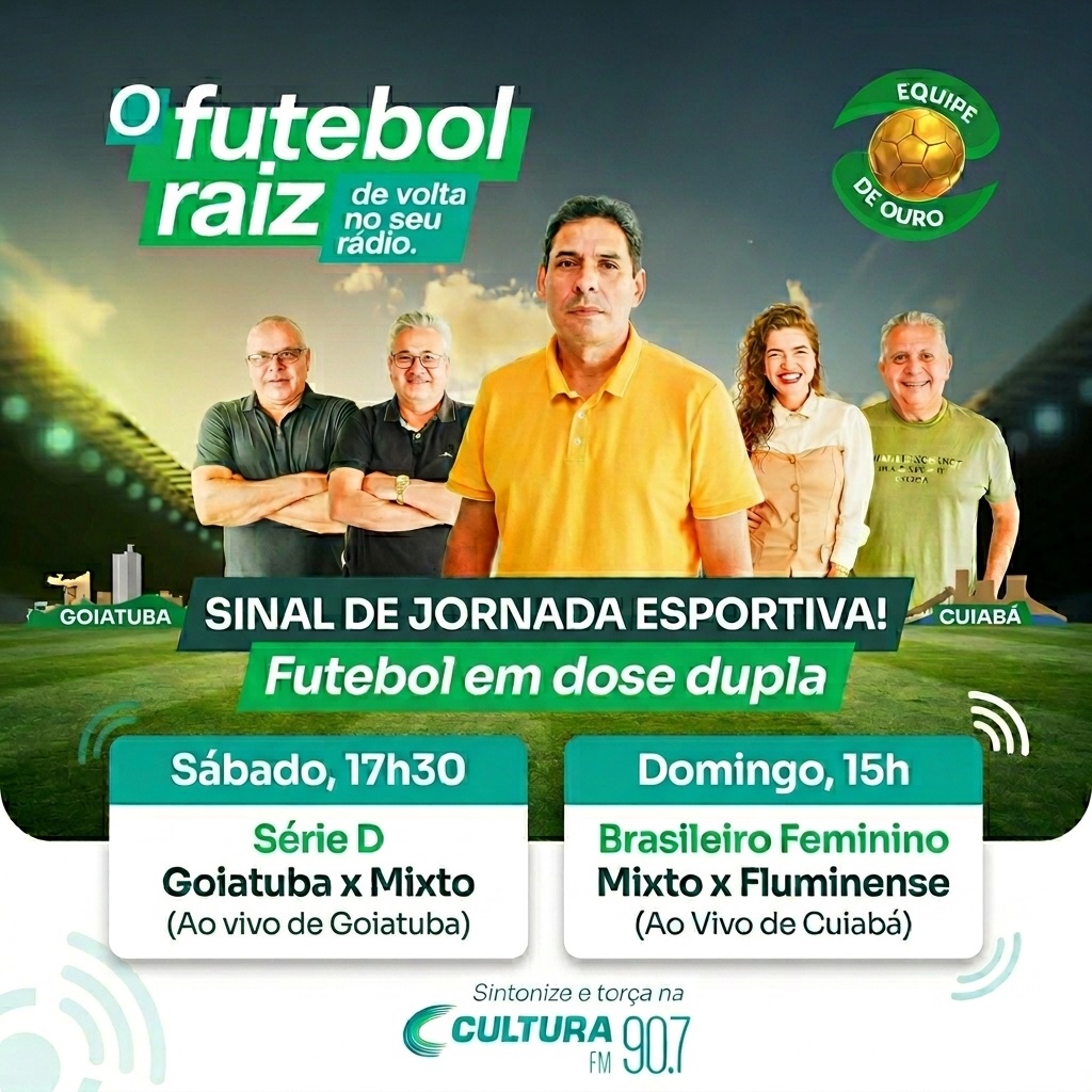 O FIM DE SEMANA TEM DOSE DUPLA DE FUTEBOL DA CULTURA FM 90.7!