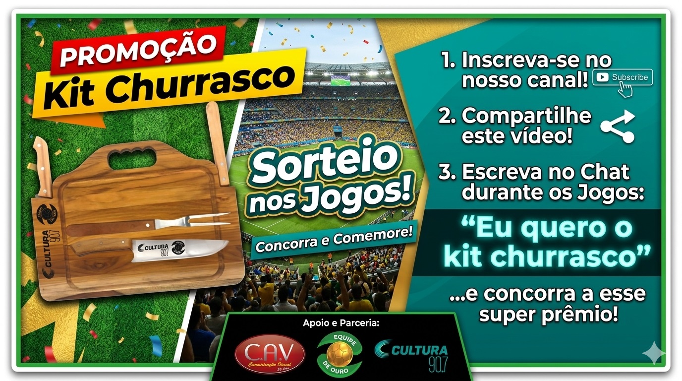 PROMOÇÃO KIT CHURRASCO CULTURA CULTURA FM 90.7 SORTEIO NOS JOGOS! CONCORRA E COMEMORE!